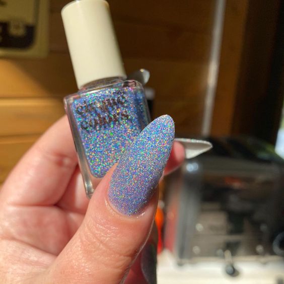 Notes: Holographic polishes look best under direct light, such as sunlight or strong indoor bulbs, to bring out the prismatic rainbow effect.